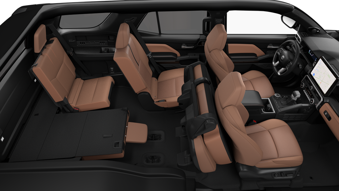 - 60/40 split, reclining and tumble-folding second-row seat with center armrest and cup holders